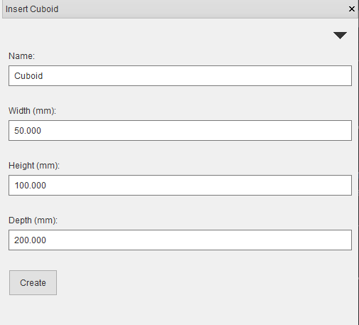 Simple models may be generated from primitives, e.g. cuboids, spheres, tubes, cone etc. Click Insert > Sample > primitives and select the desired primitive. Type in the required parameters for defining the primitive and click the Create button.